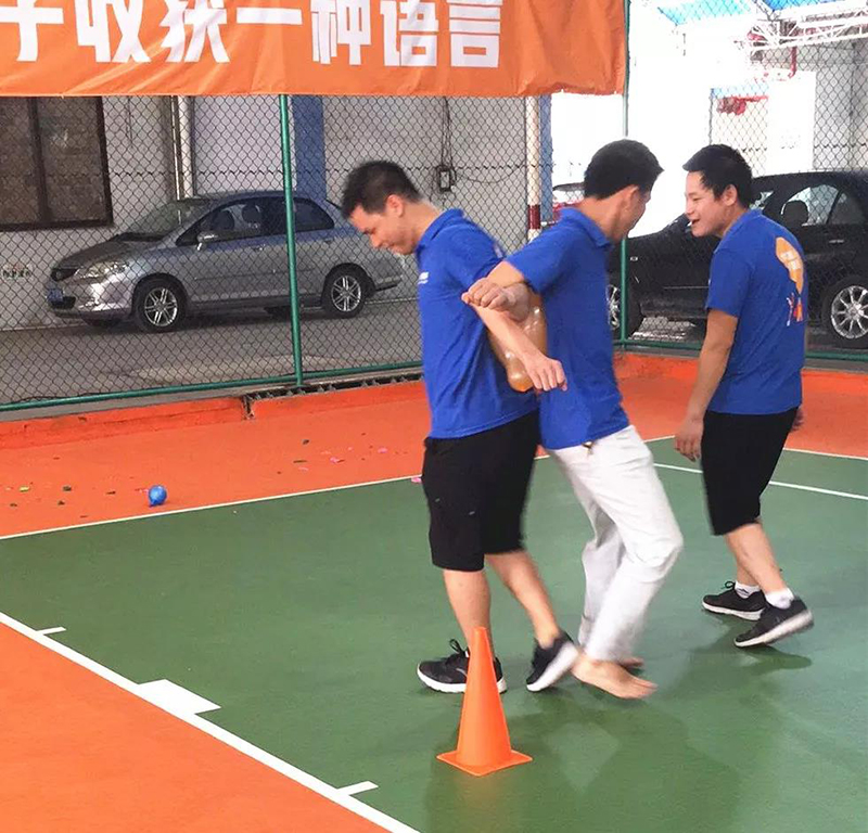 第二個挑戰——“擠氣球”,每支參賽隊伍以2個人為一組參加此游戲,選手背對背站立在指定位置,裁判將氣球放在兩位選手中間并開始計時,然后雙方夾著氣球到達指定位置并需要選手用背部將氣球擠破。這活動讓同學們學會了如何去分工,協助隊員并達成目標。