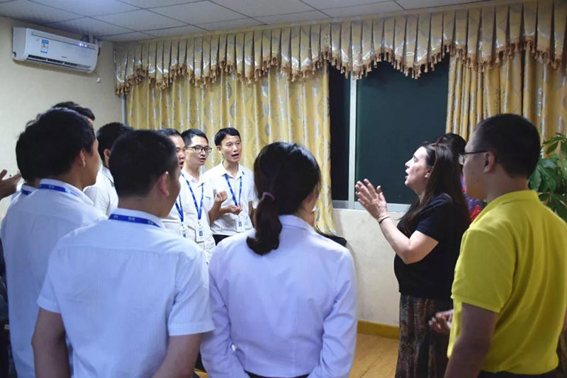 (在場每一位員工都在認(rèn)真跟著David zood校長、Sarah教授學(xué)習(xí)英語繞口令,氣氛輕松愉快,收獲滿滿。)